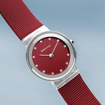 The polished stainless steel case, made of pure, high quality, medical-grade stainless steel (316L), combines with the modern Milanese strap, to provide the classic Bering look. A dial embellished with Swarovski Elements is and protected by crystal clear, scratch-resistant sapphire crystal glass.