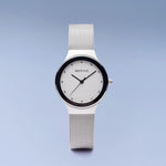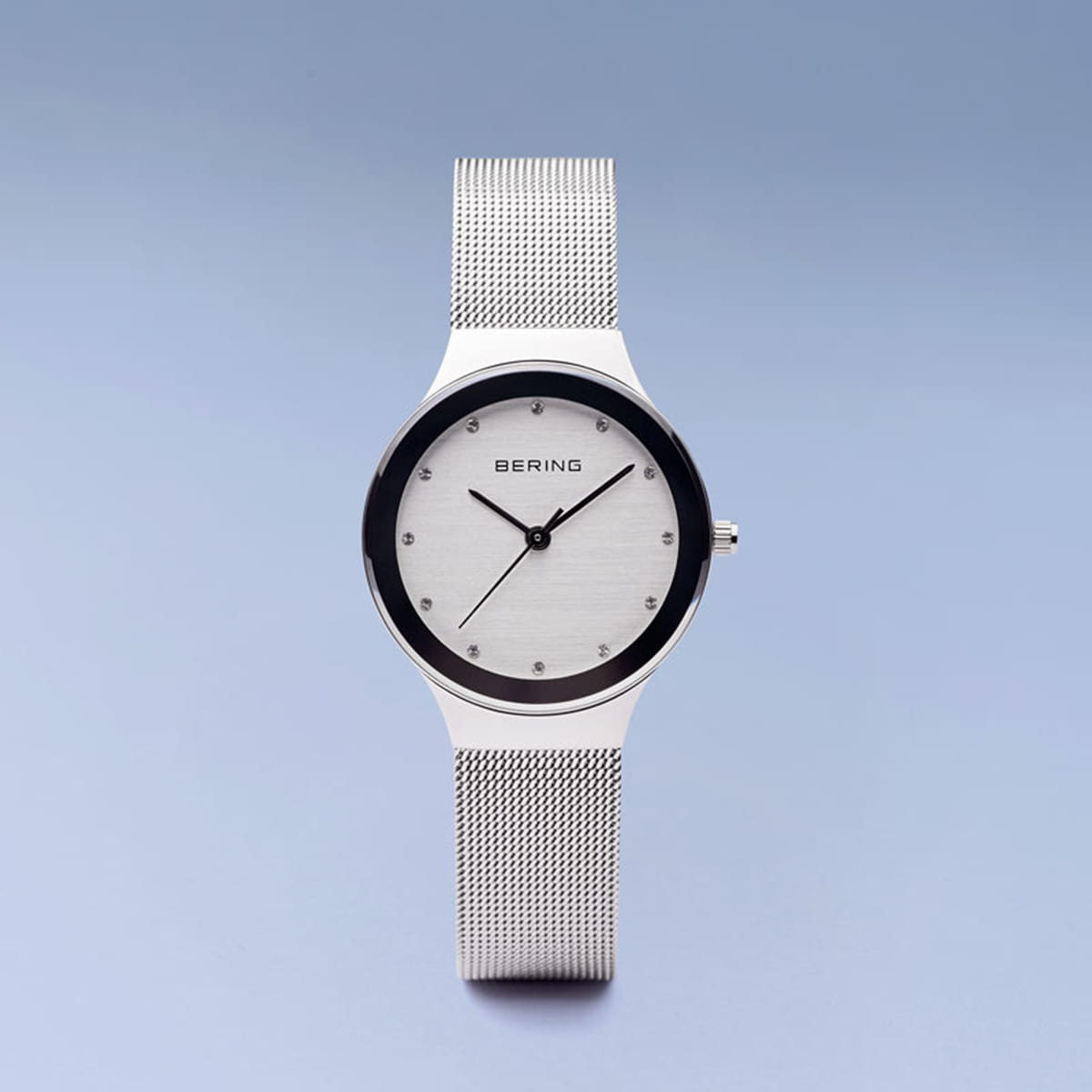 The polished stainless steel case, made of pure, high quality, medical-grade stainless steel (316L), combines with the modern Milanese strap, to provide the classic Bering look. A dial embellished with Swarovski Elements is and protected by crystal clear, scratch-resistant sapphire crystal glass.