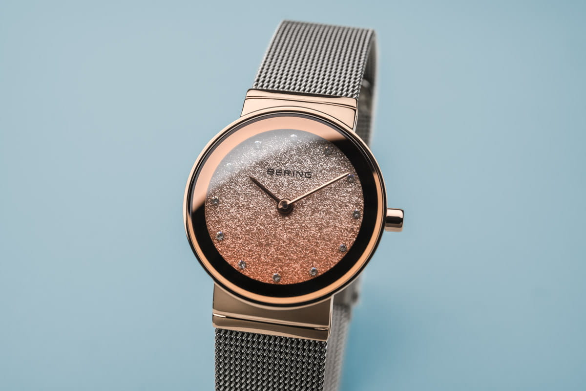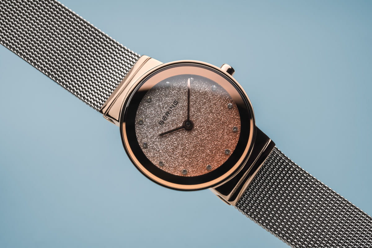 The polished stainless steel case, made of pure, high quality, medical-grade stainless steel (316L), combines with the modern Milanese strap, to provide the classic Bering look. A dial embellished with Swarovski Elements is and protected by crystal clear, scratch-resistant sapphire crystal glass.