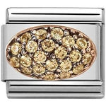 Composable Classic charm in stainless steel with 9ct rose gold black rhodium plating champagne cubic zirconia domed oval symbol.