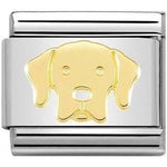 Nomination Composable Classic size charm in stainless steel with 18ct yellow gold Labrador Dog symbol.
