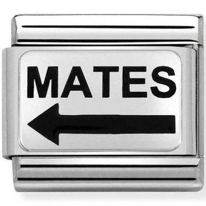 Composable Classic size charm in stainless steel with sterling silver black enamel Mates message.