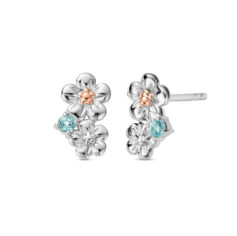 Clogau Gold Sterling Silver Blue Topaz Forget Me Not Stud Earrings