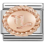 Nomination Composable Classic size charm in stainless steel with 9ct rose gold raised twist Capricorn zodiac symbol.
