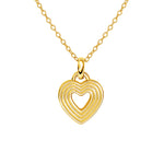Sterling silver gold plated necklace, comprising a ridged design heart pendant which is open through the centre, mounted on a delicate link chain.