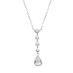 Dew Silver Pear Shape CZ Graduated Lariat Necklace