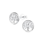 These classic sterling silver stud earrings feature a tree of life within a circle motif and are completed with stem and butterfly fittings.