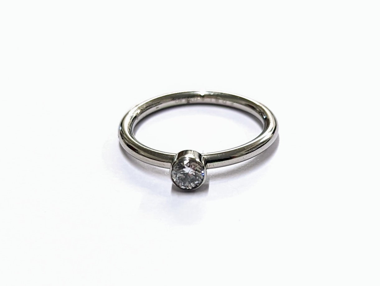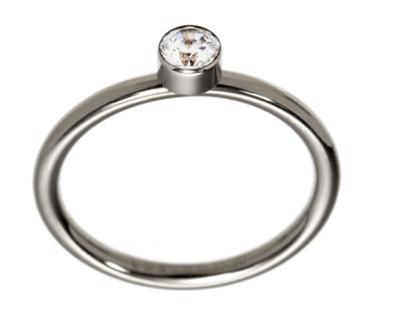 Stainless steel Belle Solitaire ring; a classic single stone ring band bezel set with a single sparkling white cubic zirconia stone.