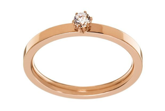 Stainless steel rose gold plated hypoallergenic Crown Mini ring; featuring a single white cubic zirconia stone set in 'crown' claw setting on a delicate ring band.