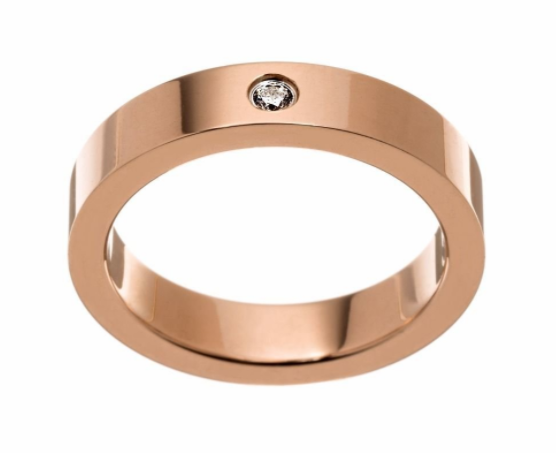 This simple chunky flat profile ring band, invisibly set with a single round white cubic zirconia stone.