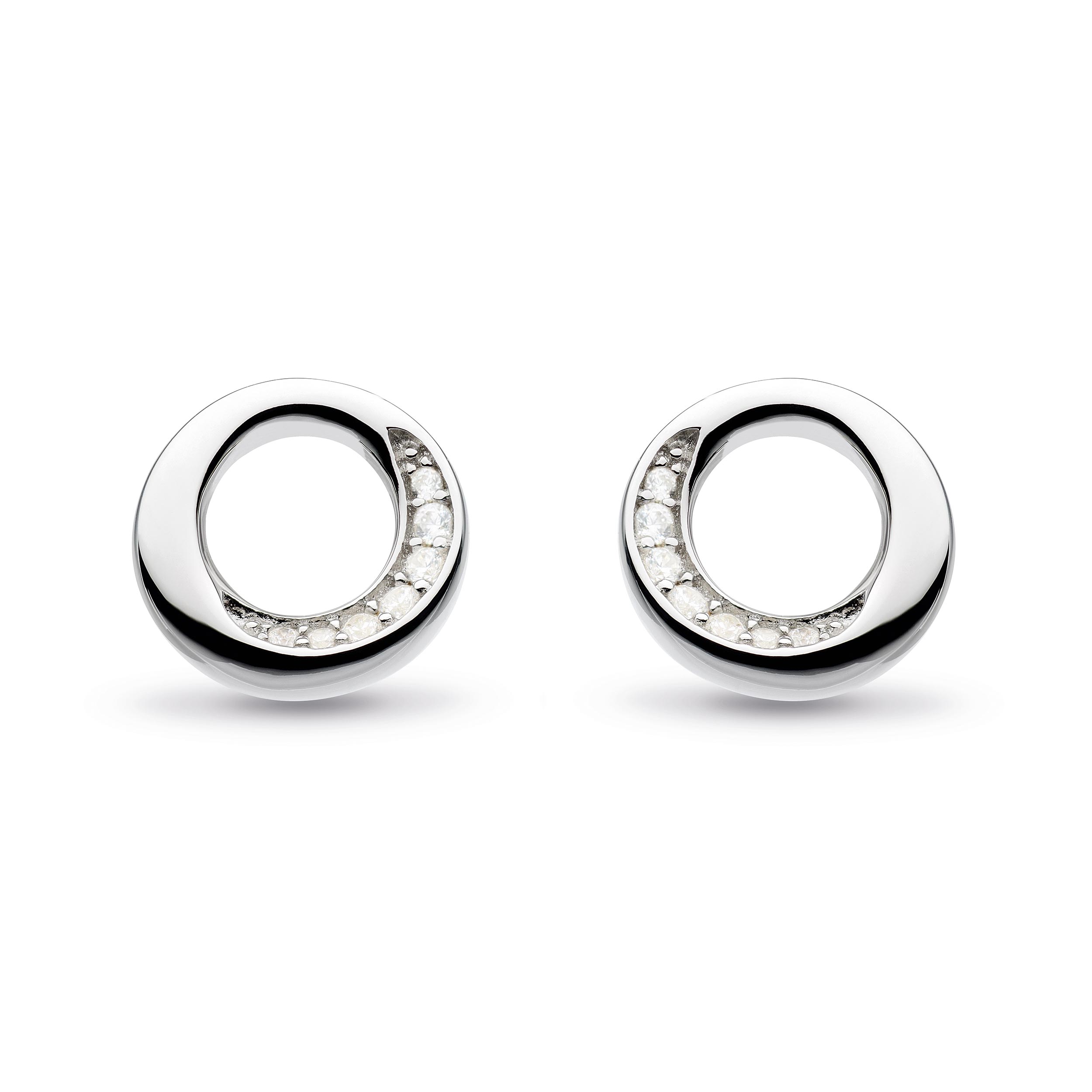 The tactile circular sterling silver stud earrings feature the classic bevels and subtle edge you've come to love and expect from Kit Heath. What's more, we've dressed them up for you with beautifully delicate and sparkling cubic zirconia. What is not to love!