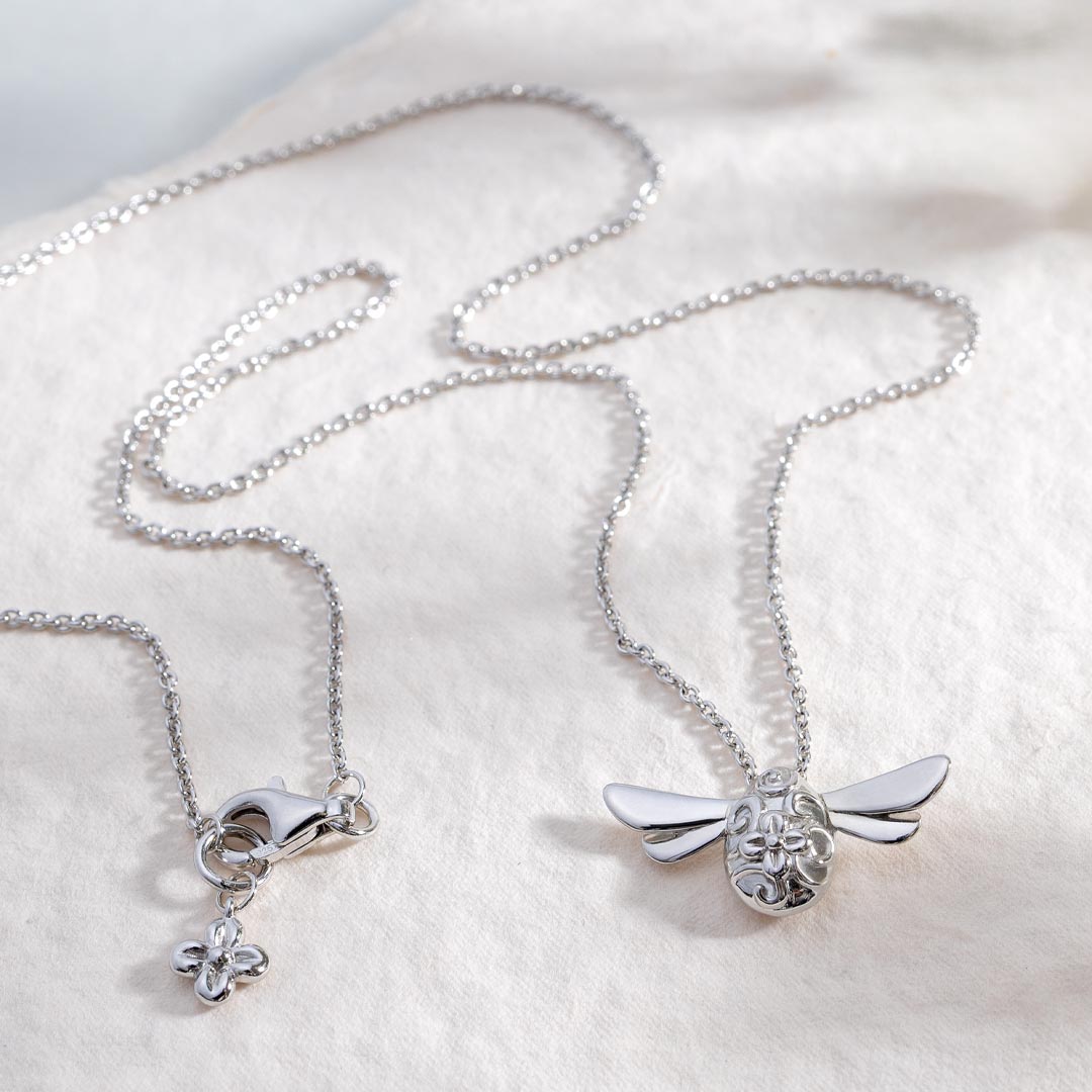 A Sterling Silver–only edition of our bestselling Blossom Flyte Honey Bee Necklace, this design celebrates nature’s humble yet persevering resilience.