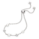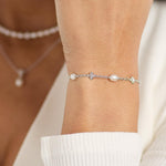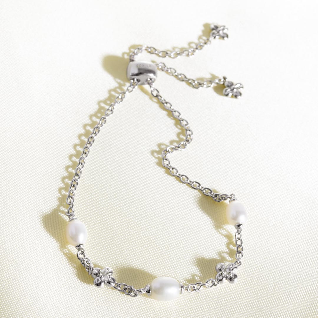 This beautiful piece features alternating Freshwater Pearls and sweet, little flower motifs in a stunning station-bracelet design, each flower adorned with a shimmering Cubic Zirconia at its centre.