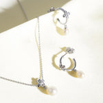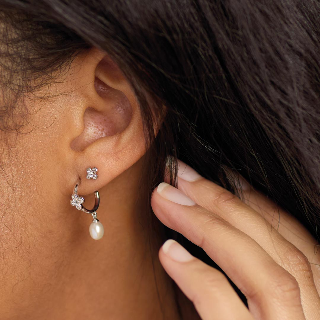 Complementing the Freshwater Pearl drop feature, each slender semi-hoop is detailed with our romantic and petite Honey Flower motif with a single sparkling Cubic Zirconia at its centre.