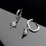 Set with brilliant Cubic Zirconia, each hoop radiates with Pavé-set sparkles to the front with a beautiful eight-pointed star pendant hanging below that is also adorned with Pavé glitz.