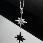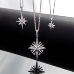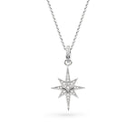 Suspended from a refined Pavé-Set Cubic Zirconia bale, the iconic eight-pointed North Star pendant gleams with its signature sparkle, capturing the celestial beauty of a guiding light. Crafted in Sterling Silver and designed to sit gracefully at 18", this necklace brings a touch of celestial-inspired style to any look.