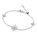 This delicate bracelet features three eight-pointed North Starburst radiating sparkle at every point and centre, connected along a fine chain. The adjustable slider clasp ensures the perfect fit for every wrist.
