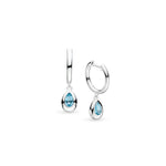 The Coast Pebble Blue Swiss Blue Topaz Hinged Hoop Earrings feature Sterling Silver hoops with a teardrop Coast Pebble pendant set with sparkling Swiss Blue Topaz.