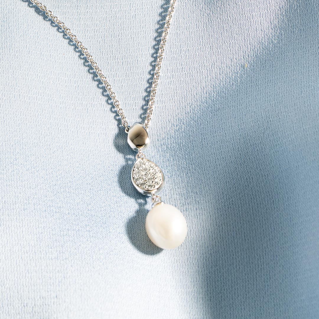 Bringing together the best of two worlds, the Coast Pebble Glisten Pavé Pearl Necklace combines the best-selling style of our sleek Coast Pebble shape with the lustrous shine of Freshwater Pearls and the enchanting sparkle of pavé-set Cubic Zirconia.
