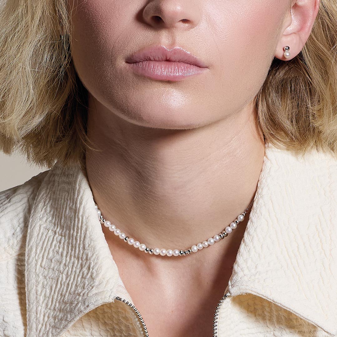Delicate, tactile, and effortlessly wearable, the Coast Tumble Pearl Beaded 18" Necklace features a half row of luminous Freshwater Pearls interspersed with individually cast Sterling Silver beads.