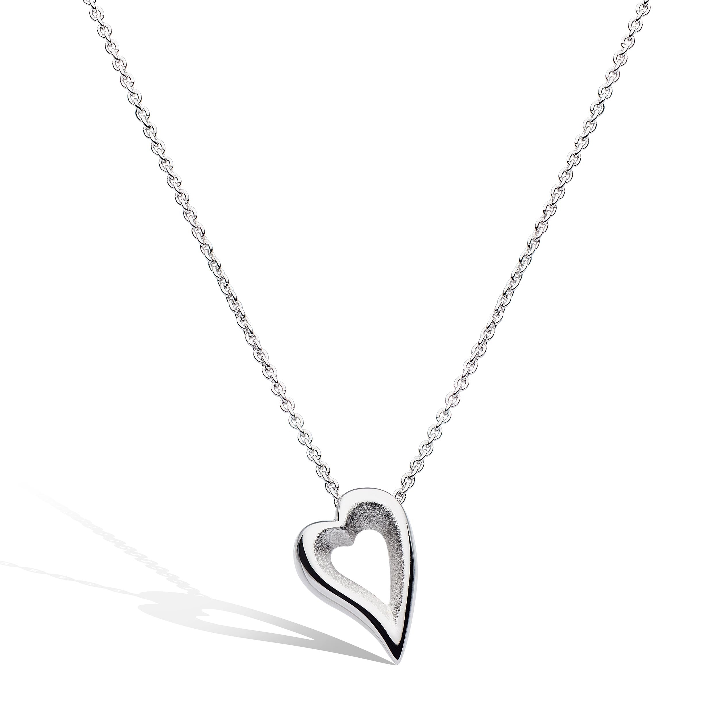 Beautiful in its simplicity, our iconic Desire heart necklace is made even more sensuous with a soft, satin textured finish in its inner outlined surface. Curvaceous in its shape and design, the heart pendant is tactile whilst remaining modest and sophisticated in its demure size. A Kit Heath classic in the making, this sterling silver heart necklace is uncompromising in its design, the delicately styled chain moving through a concealed bale.