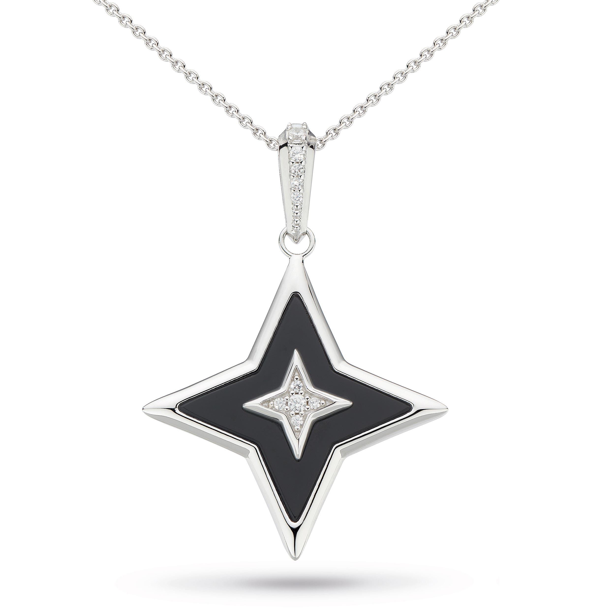 Inlaid with onyx and adorned with a micro-pavé cubic zirconia star and bale, make heads turn with this showstopper.