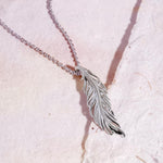 Crafted to embody the essence of freedom and aerial grace, the Feather Wisp Necklace is a stunning piece made from radiant Sterling Silver.