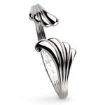 Crafted in Sterling Silver, its smooth, rounded form is adorned with sculpted shell details on each side, echoing the natural oceanic movement. The concealed hinge at the back allows for easy, comfortable wear, while the bangle’s polished surface and flowing silhouette make a confident, contemporary statement.