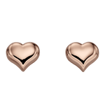 Little Star's silver heart shape stud earrings are seen here with a 9ct rose gold plated finish.