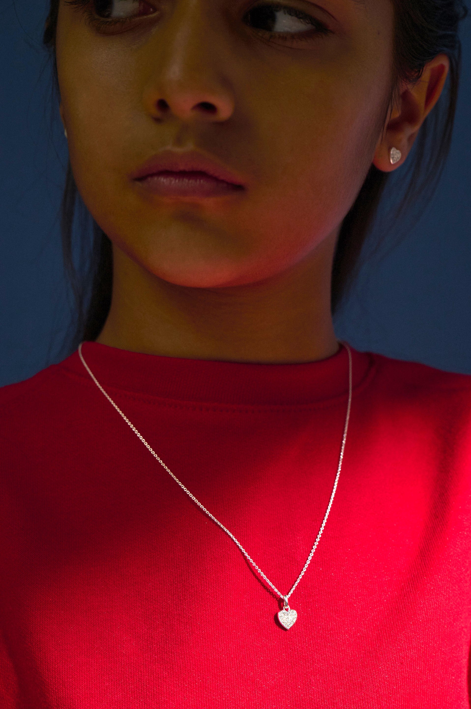 Little Star Luxe Platinum Plated Sirius Diamond Heart Necklace