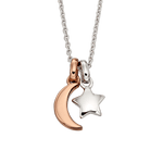 The Collette necklace by Little Star showcases two pendants in one: a sterling silver star sitting prettily alongside a rose gold plated silver crescent moon. The necklace is completed by an adjustable length chain.