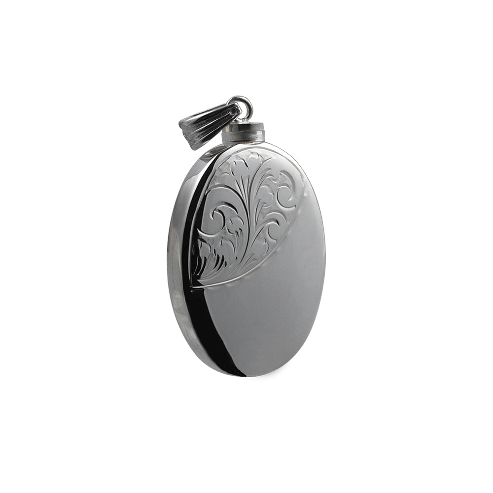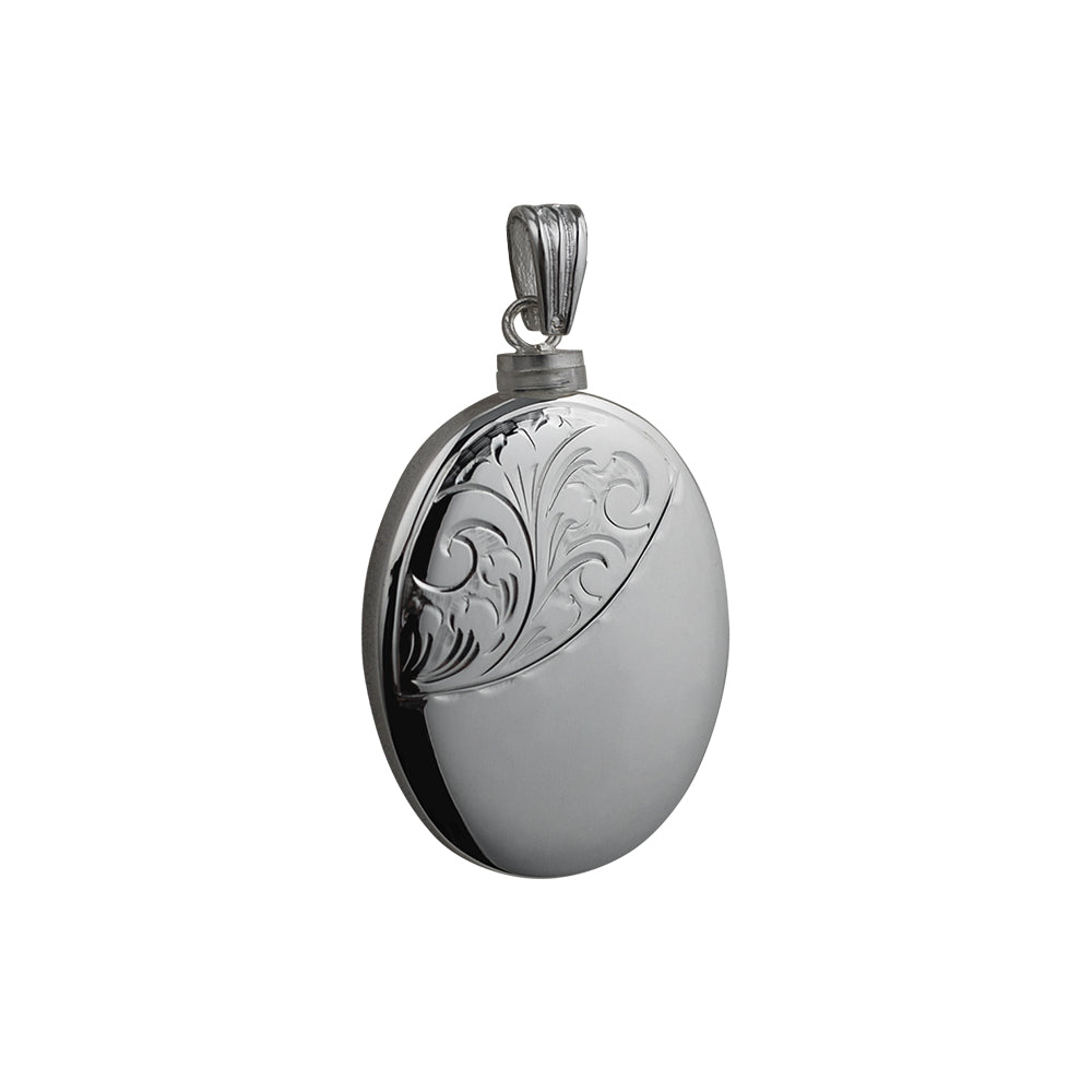Memorial Locket, Half Engraved Oval Sterling Silver 35x26mm