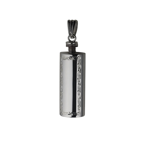 Memorial Locket, Scroll Edge Engraved Cylinder Sterling Silver 33x13mm