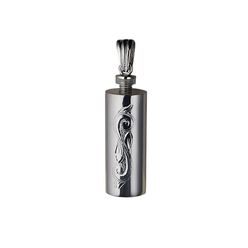 Memorial Locket, Scroll Engraved Cylinder Sterling Silver 33x13mm