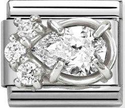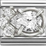 Composable Classic size charm in stainless steel with sterling silver cubic zirconia Luxe Pear Shape symbol.