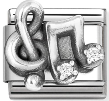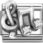 Composable Classic size charm in stainless steel with sterling silver white cubic zirconia Treble Cleft with Music Note symbol.
