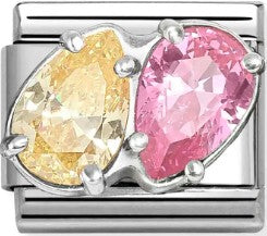 Nomination Classic CZ Yellow Pink Luxe Pear Shape Duo Charm