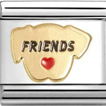 Composable Classic size charm in stainless steel with 18ct yellow gold red enamel Dog Friends symbol.