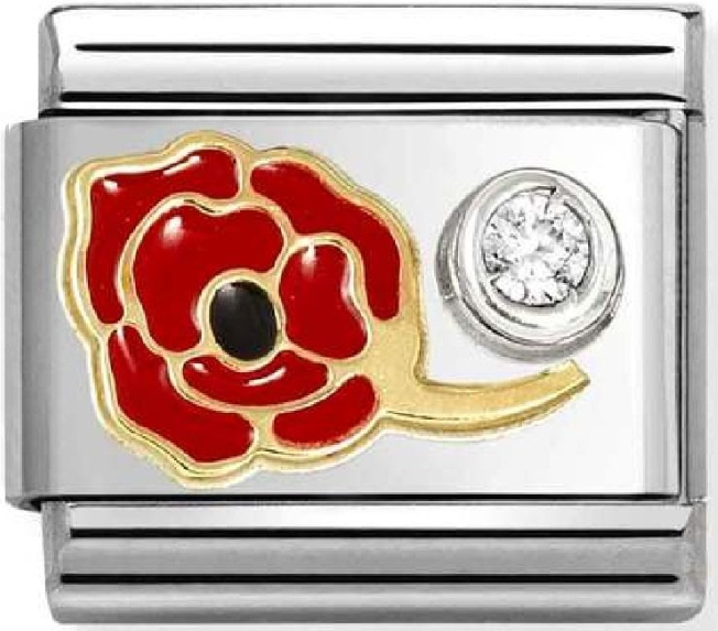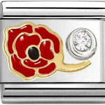 Nomination Classic Gold Enamel Red Poppy with Solitaire CZ Charm