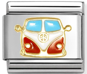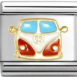 Composable Classic size charm in stainless steel with 18ct yellow gold red enamel VW Camper Van symbol.
