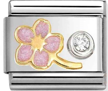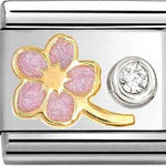 Nomination Classic Gold Enamel Pink Flower with Solitaire CZ Charm