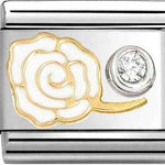 Nomination Classic Gold Enamel White Rose with Solitaire CZ Charm
