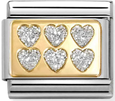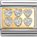 Nomination Classic Gold Glitter Enamel Silver Multi Heart Charm