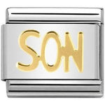 Nomination Composable Classic size charm in stainless steel with 18ct yellow gold SON message.