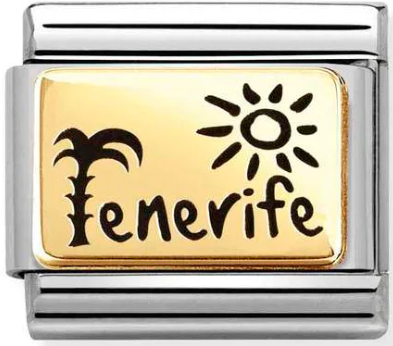Nomination Composable Classic size charm in stainless steel with 18ct yellow gold Tenerife message with Palm Tree symbol.