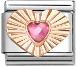 Nomination Classic Rose Gold Diamond Cut Heart Pink CZ Charm