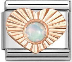 Nomination Classic Rose Gold Diamond Cut Heart White Opal Charm