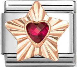 Nomination Classic Rose Gold Diamond Cut Star Red CZ Charm