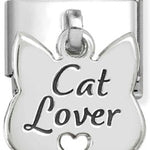 Composable Classic size charm in stainless steel with sterling silver drop Cat symbol engraved with Cat Lover message.