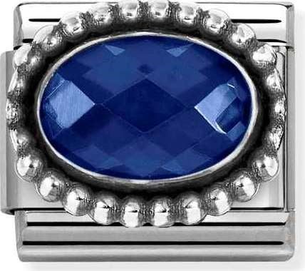 Nomination Classic Silver CZ Vintage Effect Oval Blue Charm